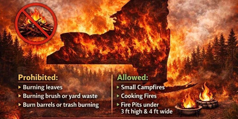 To combat the increased risk of springtime wildfires, the New York State Department of Environmental Conservation (DEC) enforces an annual burn ban from March 16 through May 14. Since its inception in 2009, this critical policy has successfully reduced spring wildfire occurrences by approximately 43%, targeting the single largest cause of fires: the open burning of debris and brush. While the ban prohibits the burning of sticks, branches, and yard waste during these dry months, small, supervised campfires and cooking fires—under 3x4 feet—are still permitted. By adhering to these regulations and reducing open debris burning, residents can protect communities and help prevent the spread of wildfires across the state 🔥🪵🔥